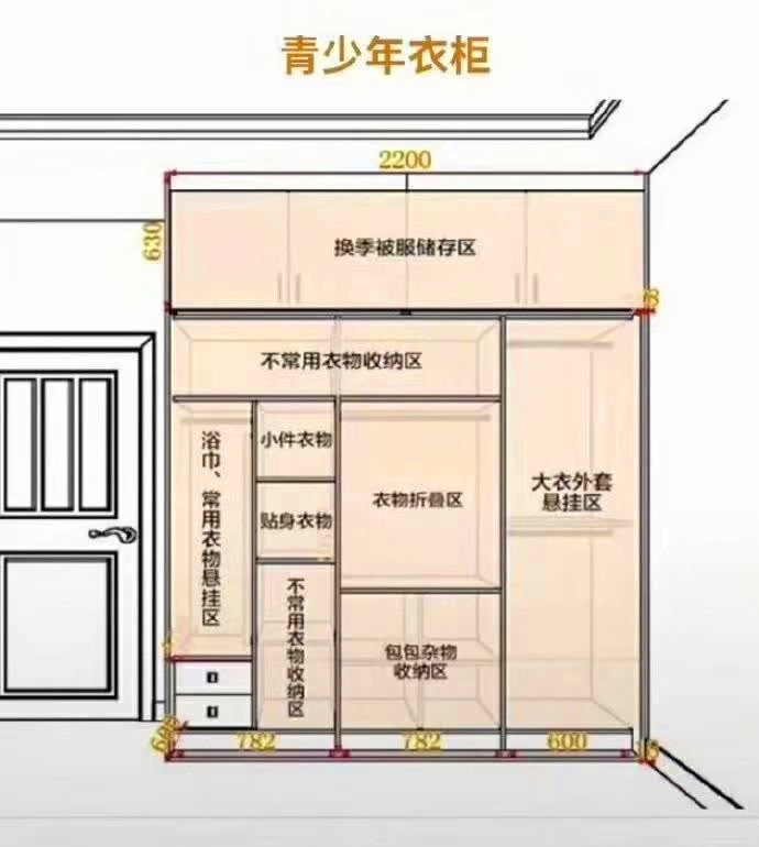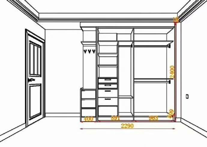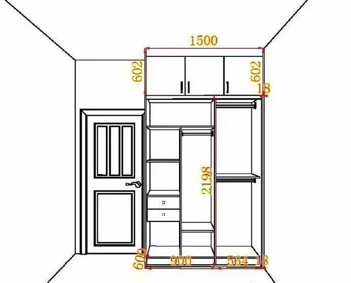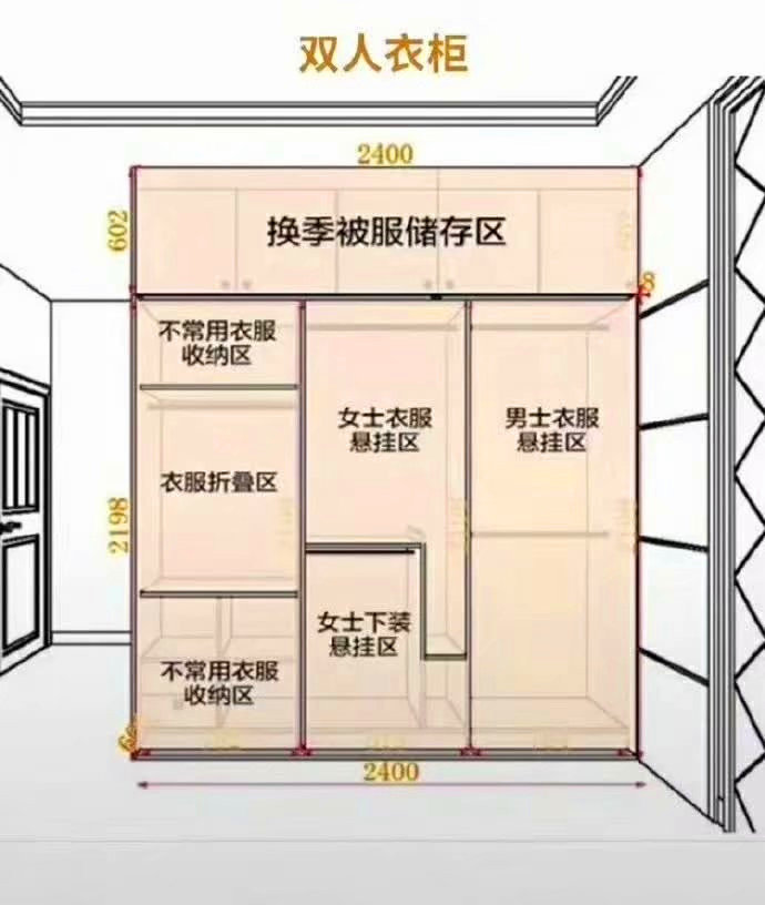 准备现场打柜子的小伙伴们来看看柜子的内部设计和一些常规尺寸吧,看看是否适合你,提前做个参考,等木工进场根据使用习惯和需要做调整,你自己就可以设计一个适合你的衣柜。
